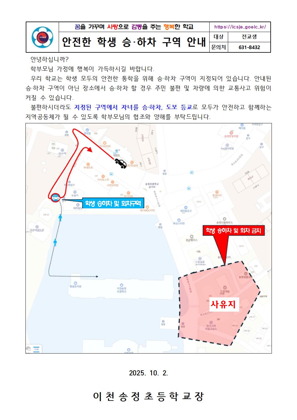 안전한 학생 승,하차 구역 안내